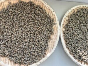 小さな一粒一粒の生豆。カビているもの。虫食い・腐敗は混ざっていないか?